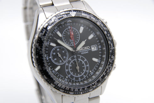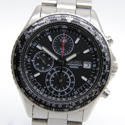 SEIKO 【N MINT】 Flightmaster 7T92-0CF0 40mm Chronograph Black Date QZ Men's Watch